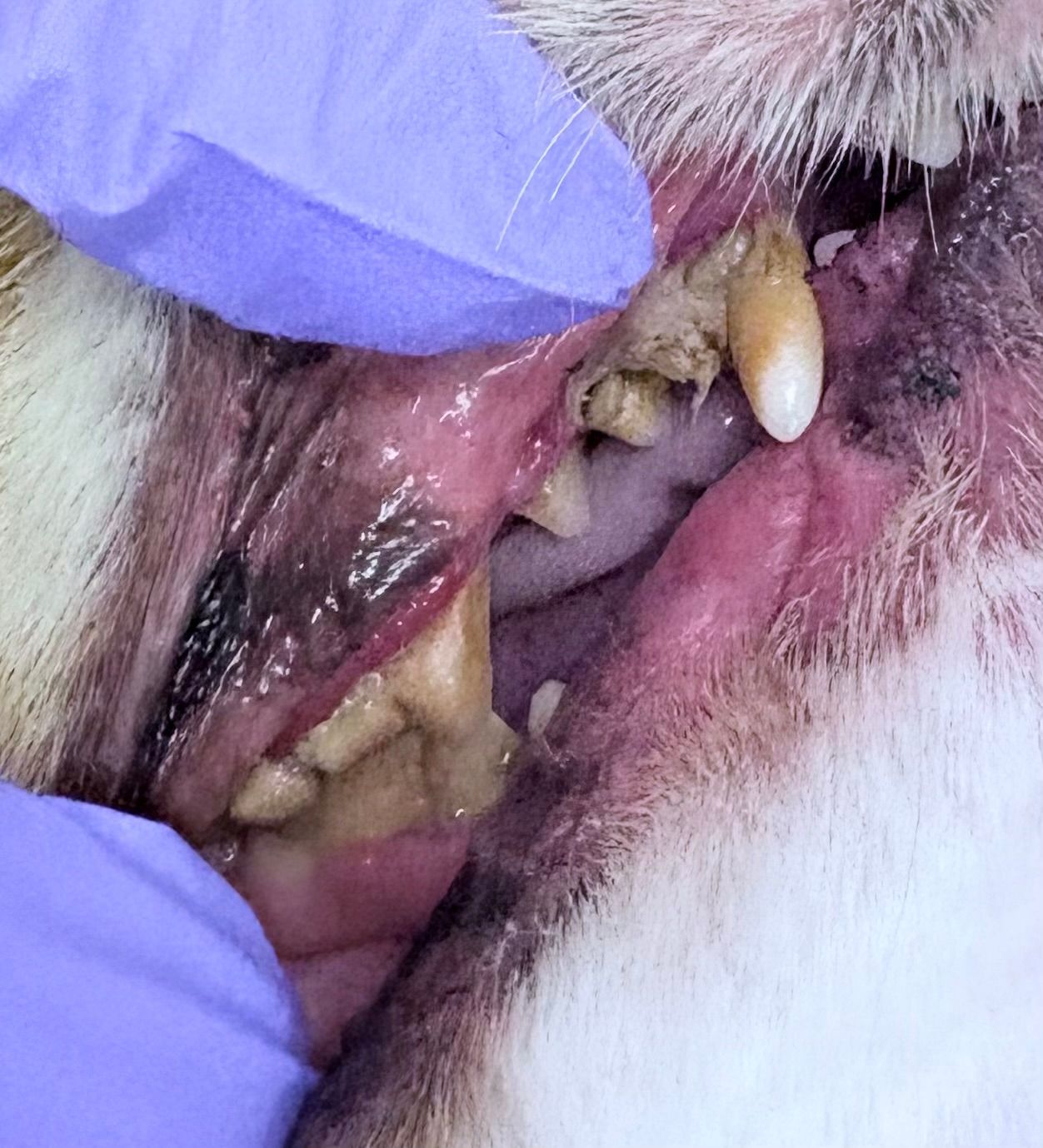 An anesthetic dental procedure, typically performed at a veterinary clinic, requires your pet to be placed under general anesthesia. While anesthesia allows for deeper medical procedures such as extractions and treatment of advanced disease, it also requires pre-anesthetic bloodwork, carries medical risk, and involves recovery time. Pets are often groggy, nauseous, or fatigued for 12–24 hours afterward.